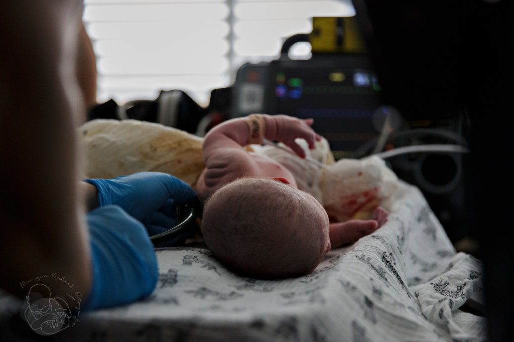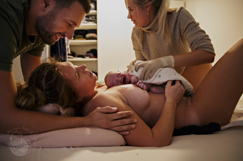 Wat een wervelwind van een bevalling. Heel goed dat mama zich er volledig aan over kon geven en de gedachte dat de ambulance in de buurt was gaf haar toch wel iets rust.