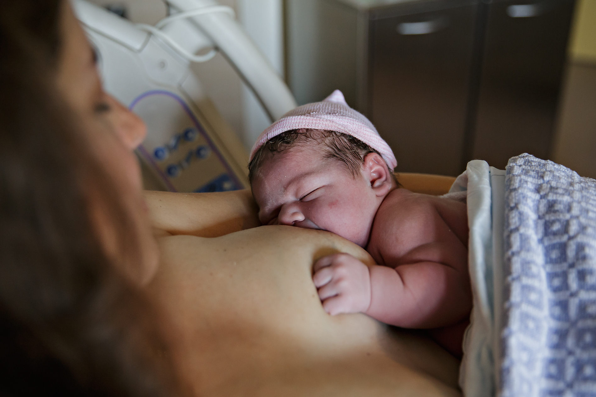 Omdat baby toch ietwat groter was dan de gemiddelde baby bleven haar schouders steken. De mama moest uit bad en op bed. Met alle aanmoediging werd kleine Luus geboren. Wat een prachtig moppie!