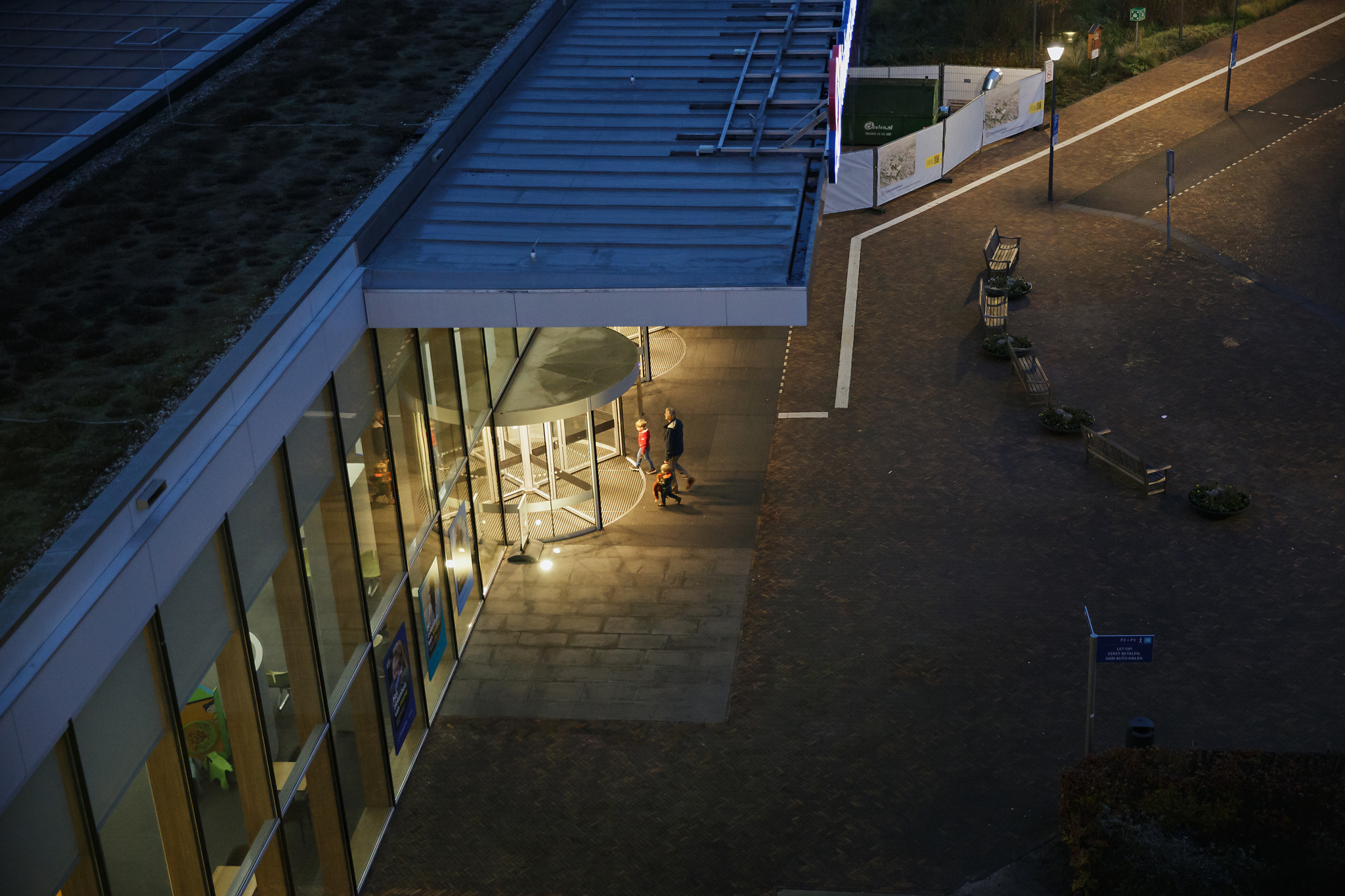 Vanuit de verloskamers aan de linkerkant heb ik prachtig zicht op de draaideur en daar zag ik opa met de twee grote broers aan komen lopen.