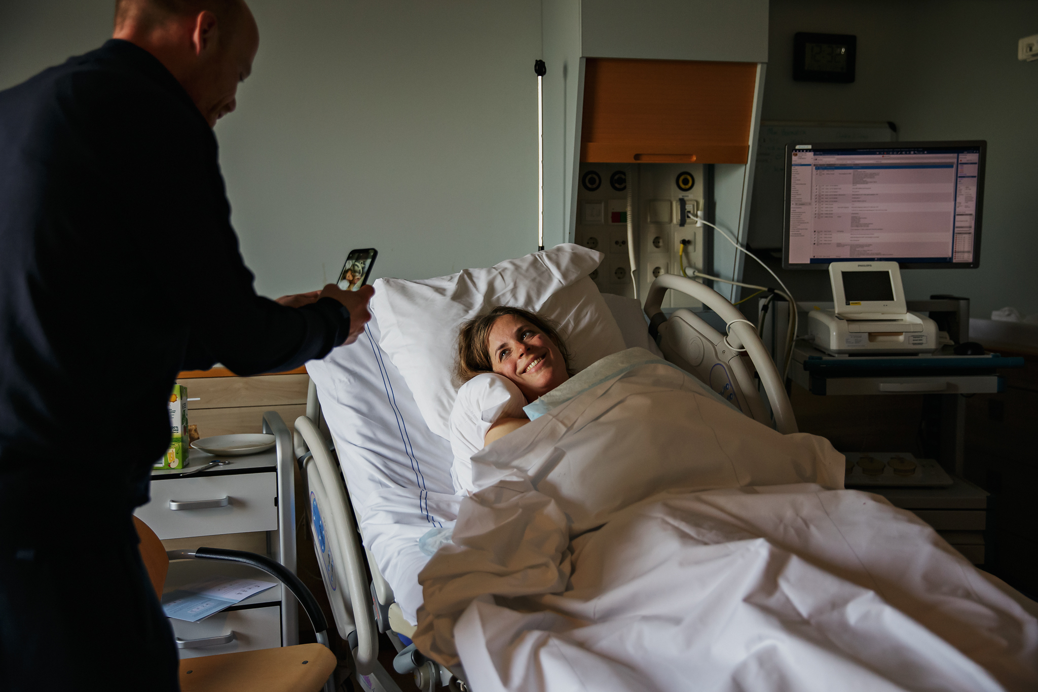 Als fotograaf vind ik dat zo’n lief moment om vast te leggen en dat begint al met de entree van het ziekenhuis binnenlopen.