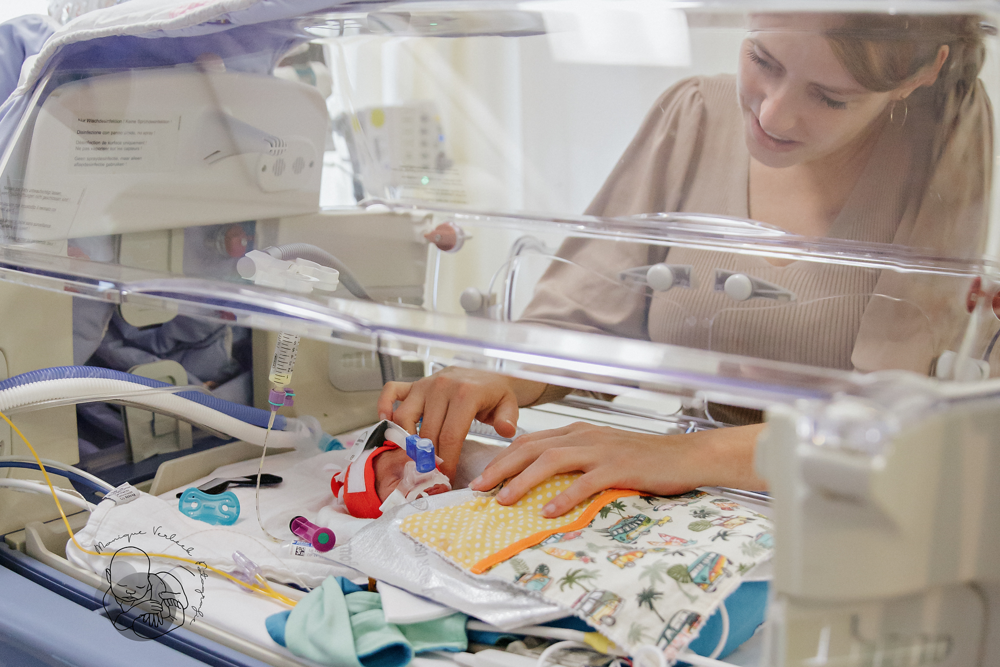 Jake heeft nog een lange weg te gaan en moet nog veel groeien. Gelukkig is mama elke dag bij hem en mag hij lekker buidelen. Daar ligt hij bij mama huid op huid en kan hij haar ruiken en hoort en voelt hij haar hartslag en ademhaling. Voor beide is dat natuurlijk genieten.